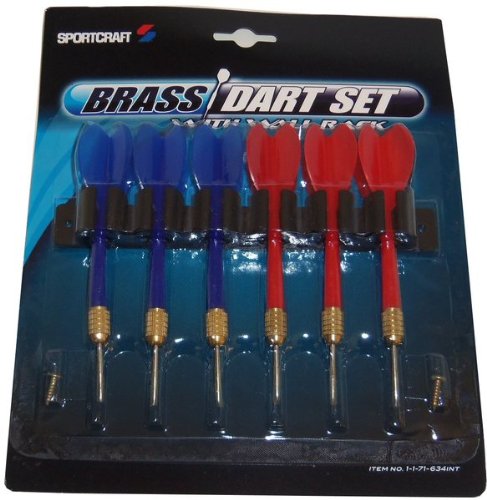 Dart Set, brass with wall mount - 6pc. 10 gram brass darts with solid PVC shaft and flights."" Case Pack 96 Please note: If there is a color/size/type option, the option closest to the image will be shipped (Or you may receive a random color/size/type).Read more Dart Set, Brass with Wall Mount - 6pc Case Pack 96