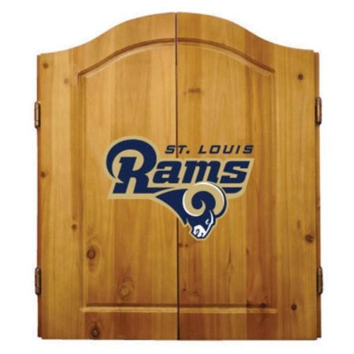 Football Dartboards. Show your team spirit with one of our officially licensed football dartboards! With authentic logos for your favorite NFL team, it's an awesome addition to your den, games room, bar or garage. Solid pine dartboard cabinet opens up to reveal a traditional bristle dartboard and two chalkboards for keeping track of scores. The outer doors of the cabinet and the chalkboards inside all feature the genuine team logo for the NFL team of your choice. Includes six NFL darts, chalk and an eraser. 25" w x 5" d x 27" h (when cabinet doors are closed). Please allow two weeks for delivery. It's a games room classic, with officially licensed team logos--order your NFL dartboard today! NFL is a registered trademark of the National Football League.