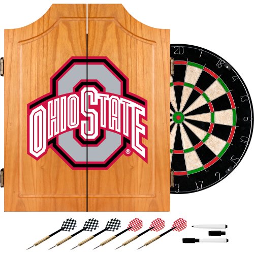 Bring the game to your game room, garage or collection with an officially licensed beveled wood dart cabinet. Enjoy competition among friends while pre-gaming, during halftime, or at the after party. The officially licensed beveled wood dart cabinet comes with everything you need for a great game. It includes a high quality, self healing sisal fiber dartboard, six steel tipped darts, dry-erase scoreboard, out chart, marker and mounting supplies. With an officially licensed beveled wood dart cabinet you’re guaranteed to have fun no matter what the scoreRead more NCAA Ohio State University Dart Cabinet Set