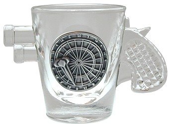 Beautiful shot glass with pewter dart board and darts emblemThis is a wonderful present for the dart player in your life, or you can keep it and make all your team mates and friends jealousSearch our Product Guides using the words "buy US Darts"