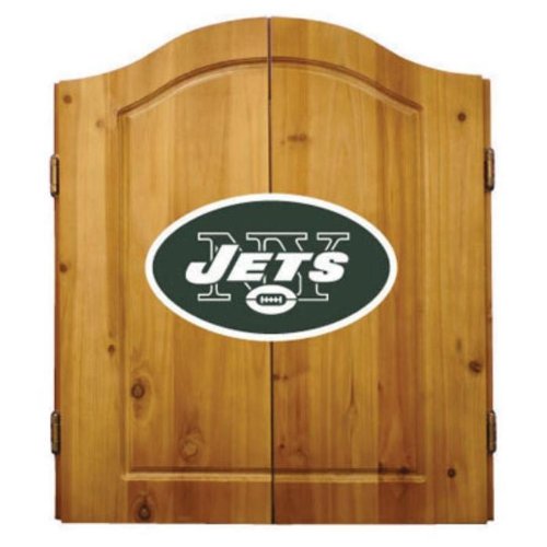 Football Dartboards. Show your team spirit with one of our officially licensed football dartboards! With authentic logos for your favorite NFL team, it's an awesome addition to your den, games room, bar or garage. Solid pine dartboard cabinet opens up to reveal a traditional bristle dartboard and two chalkboards for keeping track of scores. The outer doors of the cabinet and the chalkboards inside all feature the genuine team logo for the NFL team of your choice. Includes six NFL darts, chalk and an eraser. 25" w x 5" d x 27" h (when cabinet doors are closed). Please allow two weeks for delivery. It's a games room classic, with officially licensed team logos--order your NFL dartboard today! NFL is a registered trademark of the National Football League.