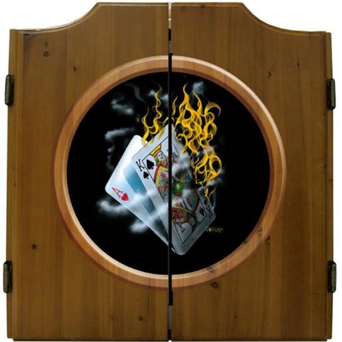 Product Description : Michael Godard Dartboard Cabinet Set - Burning Blackjack
