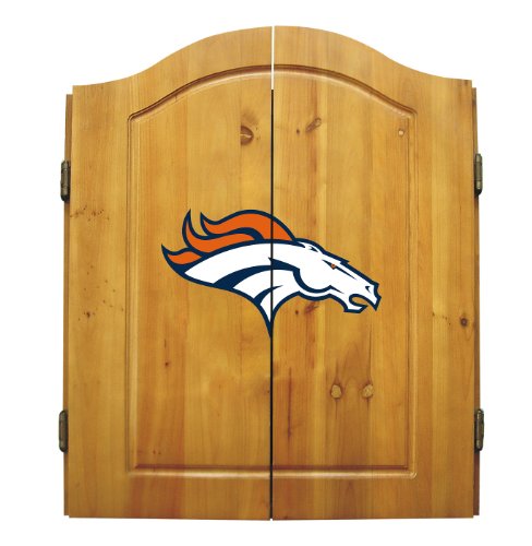 Product Description : Denver Broncos NFL Complete Dart Board Cabinet Set