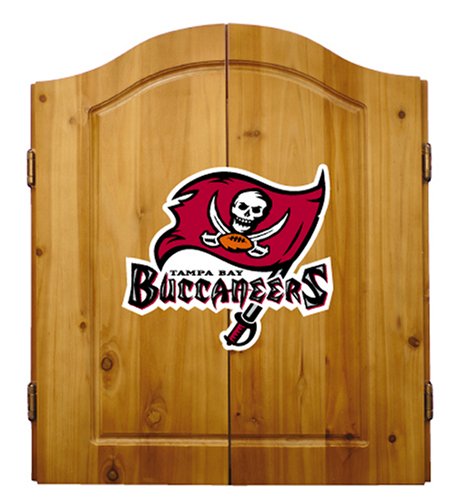 Review NFL Tampa Bay Buccaneers Solid Pine Cabinet And Bristle Dartboard Set