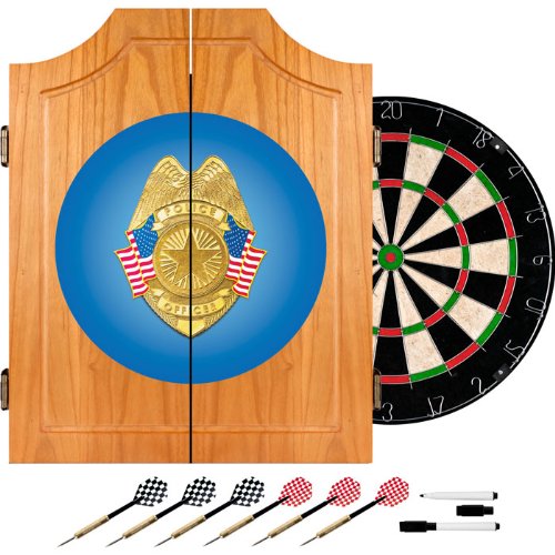 Product Description : Police Officer Wood Dart Cabinet Set - Game Room Products Dart Cabinets American Heroes