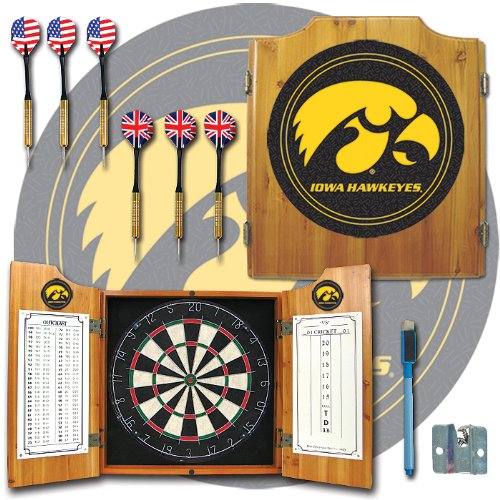 This Officially Licensed NCAA Dart Cabinet comes with everything you need to start playing. It includes a high quality, sefl healing dart board, 6 steel tip darts, dry-erase scoreboard, out chart, marker and mounting bracket to mount the board in the cabinet.