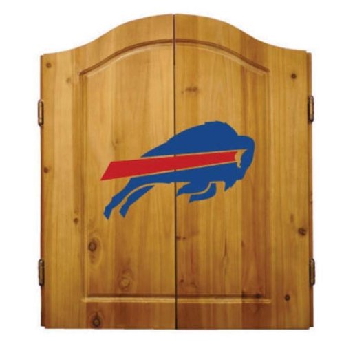 Football Dartboards. Show your team spirit with one of our officially licensed football dartboards! With authentic logos for your favorite NFL team, it's an awesome addition to your den, games room, bar or garage. Solid pine dartboard cabinet opens up to reveal a traditional bristle dartboard and two chalkboards for keeping track of scores. The outer doors of the cabinet and the chalkboards inside all feature the genuine team logo for the NFL team of your choice. Includes six NFL darts, chalk and an eraser. 25" w x 5" d x 27" h (when cabinet doors are closed). Please allow two weeks for delivery. It's a games room classic, with officially licensed team logos--order your NFL dartboard today! NFL is a registered trademark of the National Football League.