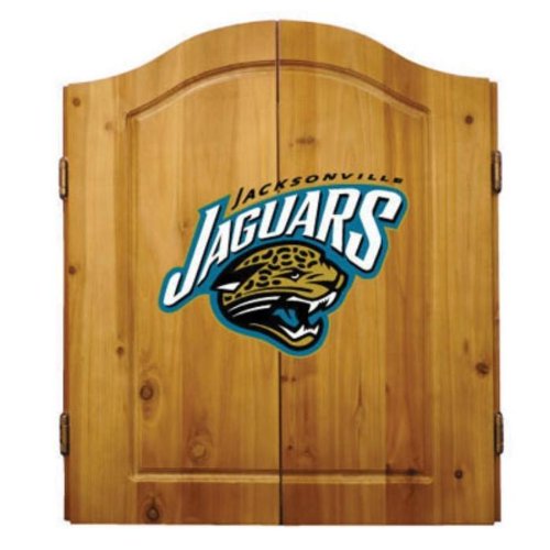 Football Dartboards. Show your team spirit with one of our officially licensed football dartboards! With authentic logos for your favorite NFL team, it's an awesome addition to your den, games room, bar or garage. Solid pine dartboard cabinet opens up to reveal a traditional bristle dartboard and two chalkboards for keeping track of scores. The outer doors of the cabinet and the chalkboards inside all feature the genuine team logo for the NFL team of your choice. Includes six NFL darts, chalk and an eraser. 25" w x 5" d x 27" h (when cabinet doors are closed). Please allow two weeks for delivery. It's a games room classic, with officially licensed team logos--order your NFL dartboard today! NFL is a registered trademark of the National Football League.