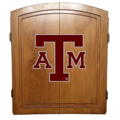 This handcrafted Texas AandM dart board cabinet is finger jointed, with heavy-duty brass hardware, offering superior durability and a charming pub style appearance. The interior of the cabinet features printed scoring guidelines, making this an ideal dart board for the casual dart player and serious Aggies fan.